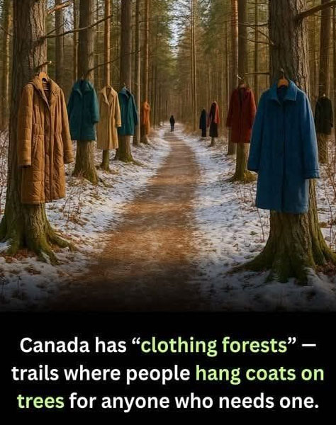 When winter’s chill settles across Canada, bringing biting winds and heavy snowfall, warmth becomes more than just a comfort—it becomes a necessity for survival. For many, especially those facing homelessness or financial hardships, access to warm clothing can be a daily struggle. Yet, amid this harsh season, a quiet, heartfelt movement has blossomed: “clothing forests.” These unique spaces turn ordinary public parks and wooded areas into open-air wardrobes, where coats, sweaters, scarves, hats, gloves, and even boots hang on branches, offering free warmth to anyone who needs it. This grassroots initiative, spreading across cities and towns, is a powerful testament to community kindness and collective care.