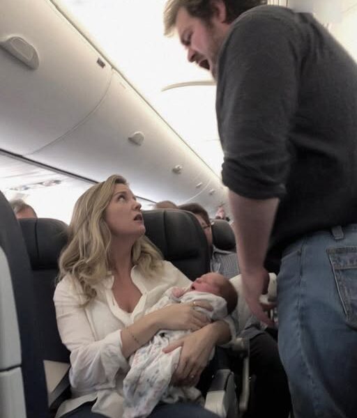 I was struggling with my crying baby on a crowded flight when a rude man told me to lock myself in the restroom with my child until we landed. Only one kind stranger noticed my humiliation and stepped in. The bully had no idea who this man was… or what he was capable of.