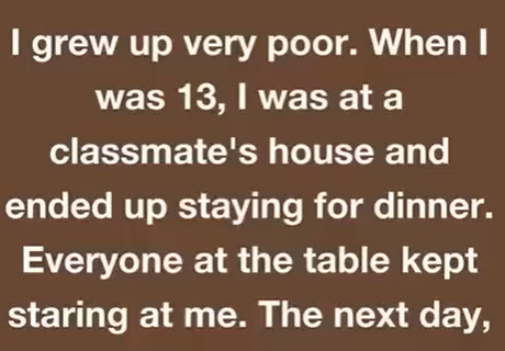 That’s not nearly enough!”Before I could react, she grabbed my plate and heaped it with food. I was stunned but touched—I think she understood just how much that meal meant to me. The food was delicious, and I savored every bite. As I ate, everyone at the table kept staring at me. The next day, I came home from school and was surprised to find my friend’s mom at our house.