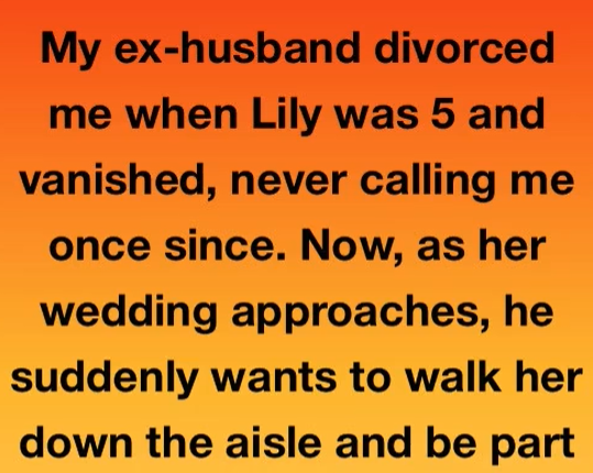 My ex-husband divorced me when Lily was 5 and vanished, never calling me once since. Now, as her wedding approaches, he suddenly wants to walk her down the aisle and be part of her life after all these years. I told Lily he doesn’t deserve it, but she told me everyone deserves one last chance.