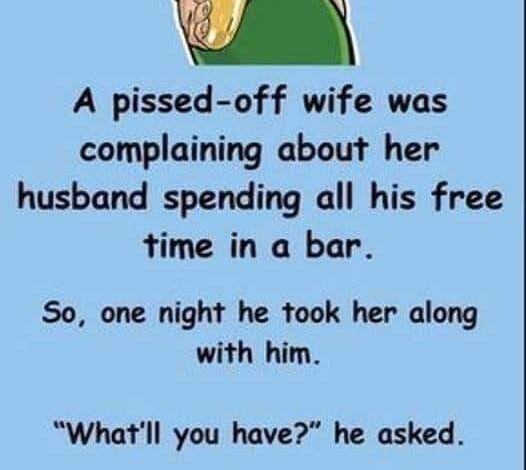 The frequent appearance of her spouse at a nearby bar was causing annoyance for a frustrated wife