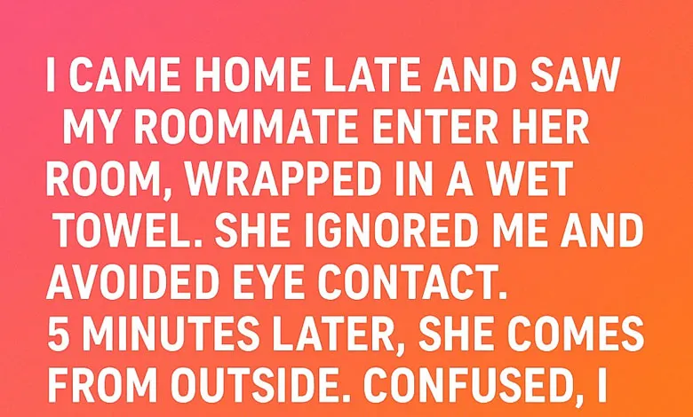 I came home late and saw my roommate enter her room, wrapped in a wet towel. She ignored me and avoided eye contact. Five minutes later, the front door opened again — and there she was, stepping in from outside, holding a bag of groceries. My heart skipped a beat. I stared at her, confused, and asked, “Weren’t you just in your room?”