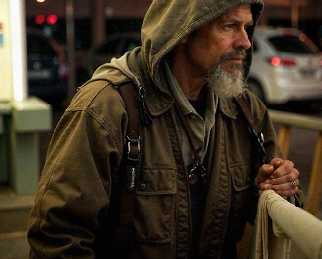Later that night, as I sat in my tiny apartment eating my meager dinner, I thought about the man. “I hope you’re okay out there,” I whispered to the rain-streaked window. “Whoever you are, you’re about my father’s age. Just… just be alright.”