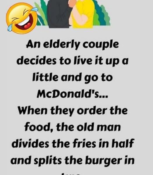 An elderly couple decides to live it up a little and go to McDonald’s… When they order the food, the old man divides the fries in half and splits the burger in two.
