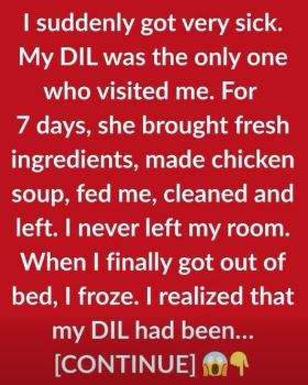 I suddenly got very sick. My DIL was the only one who visited me. For 7 days, she brought fresh ingredients, made chicken soup, fed me, cleaned and left. I never left my room.