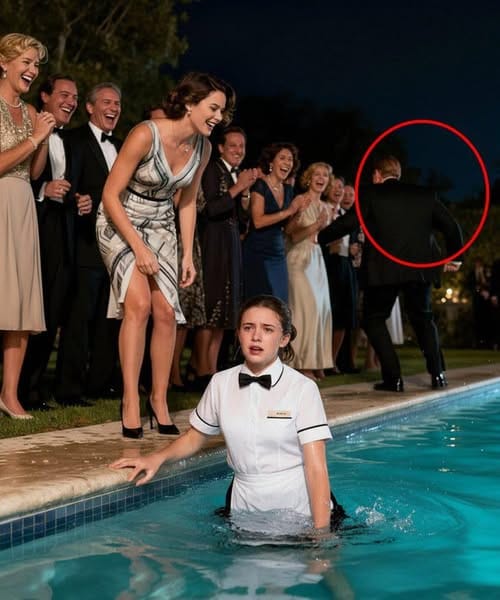 Before Emily could react, Madison shoved her shoulder. The tray of champagne flew into the air, glasses shattered on the pool deck, and Emily plunged backward into the water with a splash.