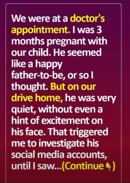 We were at a doctor’s appointment. I was 3 months pregnant with our child. He seemed like a happy father-to-be, or so I thought. But on our drive home, he was very quiet, without even a hint of excitement on his face. That triggered me to investigate his social media accounts, until I saw… messages with another woman, filled with plans that didn’t include me or our baby. My heart sank—had he been faking his joy all along? I confronted him, and his silence confirmed my worst fears. Now, I’m left wondering how to move forward, carrying our child while grappling with this betrayal. Do I end things now, or give him a chance to explain? I’m scared, angry, and lost.