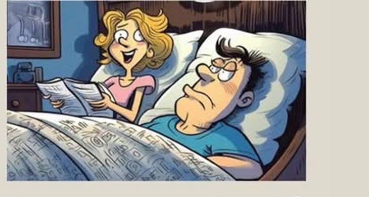 A guy suspects his wife is cheating on him so he comes home early from work one day. His wife meets him at the door in a bathrobe, her hair a mess. “Where is he?” he demands.