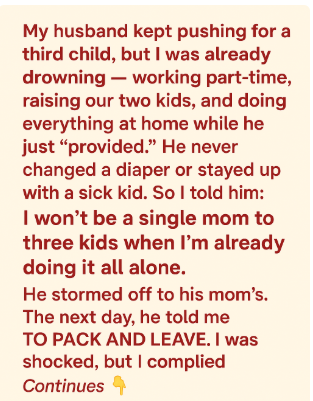 That night, after everyone had gone to bed, he brought it up again — another baby, as if the earlier humiliation hadn’t happened. He didn’t ask how I felt. He expected me to comply.