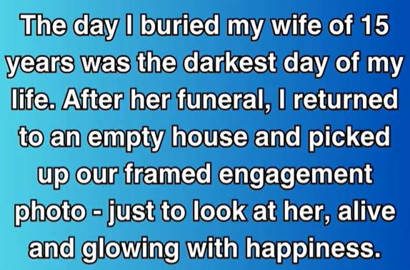 The day I buried my wife of 15 years was the darkest day of my life. After her funeral, I returned to an empty house and picked up our framed engagement photo—just to look at her, alive and glowing with happiness. Suddenly, something caught my eye, and my hands began to shake. There was a folded piece of paper wedged between the photo and the frame’s glass.