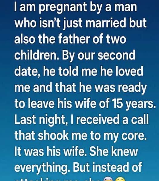 I am pregnant by a man who isn’t just married but also the father of two children. By our second date, he told me he loved me and that he was ready to leave his wife of 15 years. I believed him because he spoke with such certainty, painting a picture of a future where we could raise our baby together. But last night, everything changed when I received a call that shook me to my core. It was his wife. She knew everything.