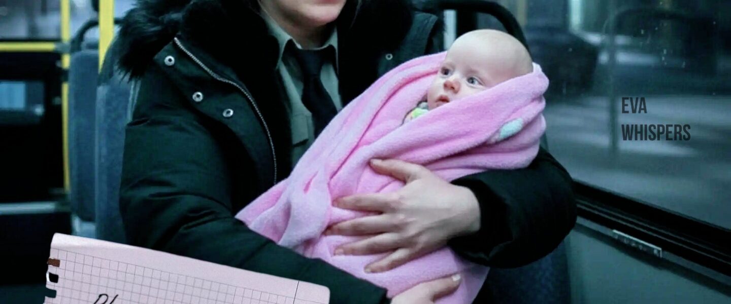 I moved toward the back, my heart thudding in my chest. The dim glow from the emergency exit light barely illuminated the seats, but that’s when I saw it—a small bundle curled up on the very last seat, wrapped in a pink blanket dusted with frost.