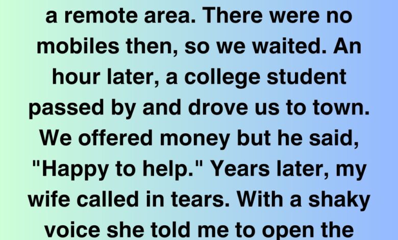 My wife and I were stranded at 2 AM on a remote road, car dead, no phones. An hour later, a college student stopped. “Need help?” he asked. He drove us to a gas station, refused money, and said, “Happy to help. One day, pass it on.” We drove home, hearts warmed.
