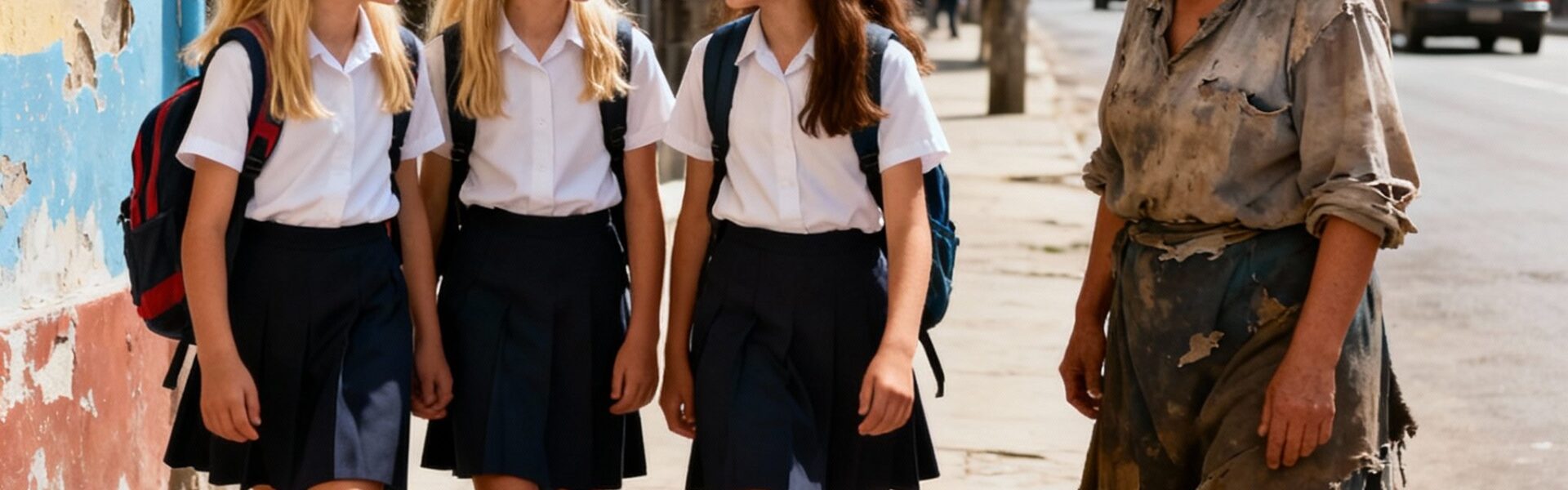 Every afternoon, Clara and her two best friends, Mia and Jordan, took the same route home from school — down Maple Street, past the bakery, and across the old park where a woman in torn clothes always sat on the same bench.