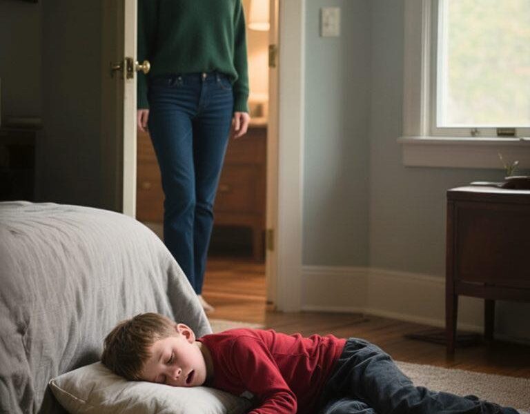 The house was spotless, too still. No sign of Buddy. Not a single bark. I called his name, checked the backyard, then the kitchen, then upstairs. Nothing. That’s when I heard it — a faint rustle, like fabric shifting behind a closed door. I froze. “Hello?” I asked, voice low. From behind the locked door came a tiny whisper: “Mom said you wouldn’t come.” My heart dropped. It was Noah — Clara’s five-year-old son. I unlocked the latch and swung the door open, and the smell hit first — stale air, fear, and neglect. He sat curled on the floor, holding a stuffed dinosaur, pale and shaking. “Since Friday,” he said when I asked how long he’d been there. “Mom said I was bad.”