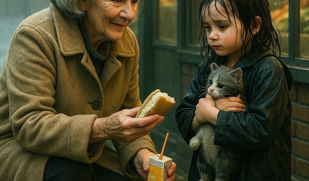 She couldn’t have been more than six or seven. Her jacket was soaked through, strands of dark hair plastered to her round cheeks. She was clutching a small stuffed cat against her chest as if it were the only warm thing left in the world.