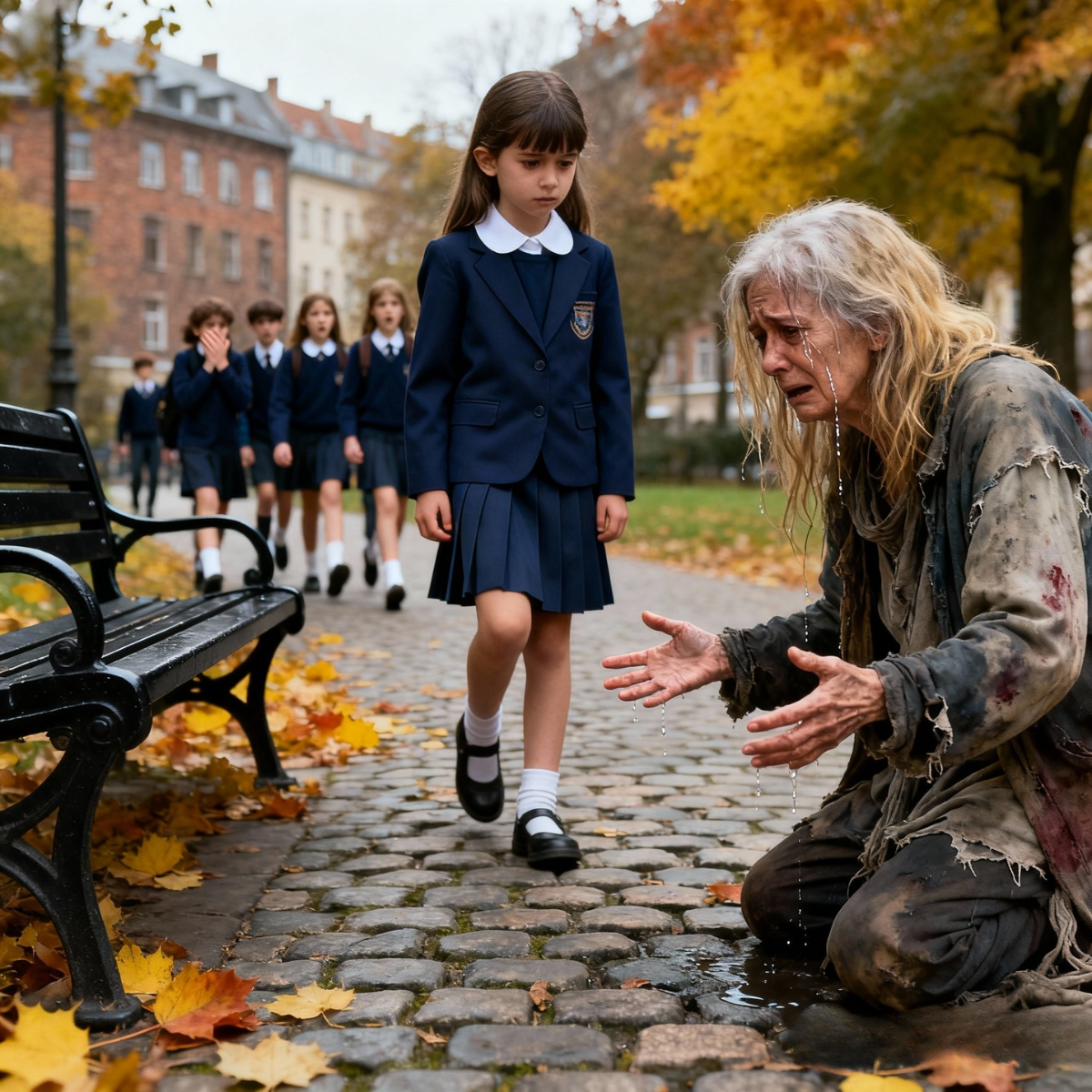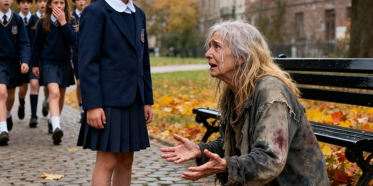 Every afternoon after school, fourteen-year-old Clara Carter walked home with her two best friends, Mia Thompson and Jordan Ellis, through the small suburban neighborhood of Brookridge, Ohio. Their route always led them past Maple Park, where a homeless woman, wrapped in mismatched layers of jackets, sat on the corner bench. Her tangled brown hair and weary eyes made her look older than she truly was.