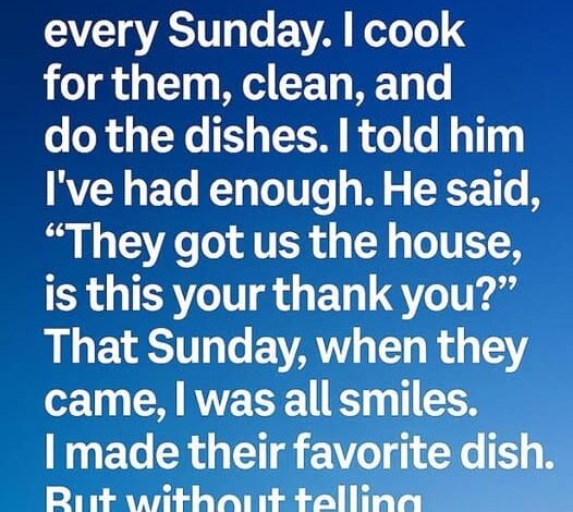 Every Sunday, my husband’s family of eight descended on our house. I cooked, cleaned, and smiled while exhaustion swallowed me whole. When I begged for a break, he said, “They helped us buy this house. Can’t you just be grateful?”