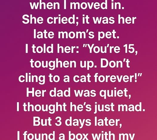 When I moved in, I gave away my 15-year-old stepdaughter Lily’s cat—her late mom’s last living link. She cried; I snapped, “Toughen up. Don’t cling to a cat forever.” Her dad stayed silent. I assumed he was angry.