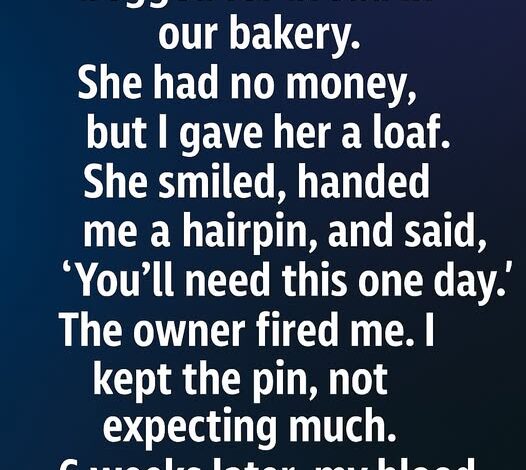 A pregnant woman begged for bread at our bakery. She had no money. I slipped her a fresh loaf anyway. She pressed a simple hairpin into my hand and whispered, “You’ll need this one day.” The owner saw it on camera and fired me on the spot.