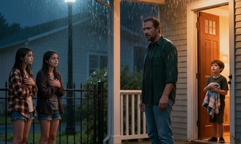 Two teenage girls about sixteen—stood beneath a flickering streetlamp, soaked through and trembling. They were identical, clearly twins. “Excuse me, sir,” one of them said, voice shaky.