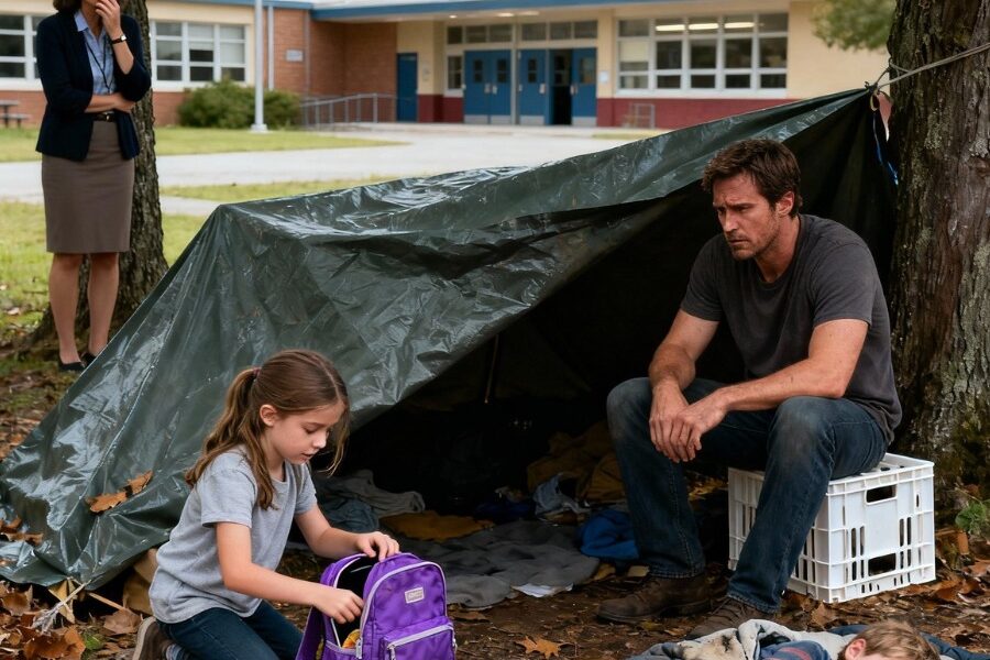 As I guided Lily through the woods, her purple backpack bobbing ahead of me, I tried to process what I had discovered. A family shattered by loss and circumstance, a father doing everything he could to keep his children safe and educated despite unimaginable hardship, and a little girl who had been silently going hungry to feed her family, carrying a burden no child should bear.