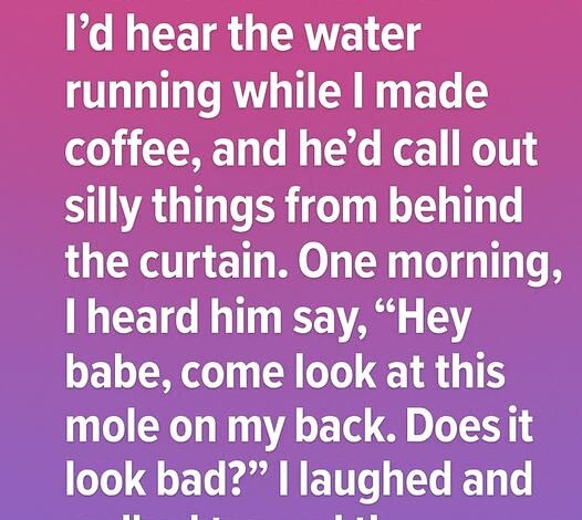 I laughed at first, thinking he was being dramatic again. But when I walked in, the curtain was slightly open, steam filling the room, and he stood perfectly still—shoulders tight, no playful smile. The “mole” was a dark, uneven patch I’d never seen before.