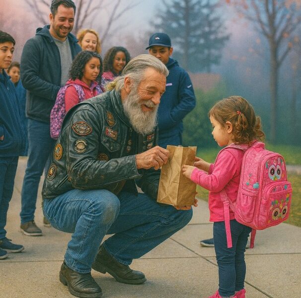 As the situation was explained, I learned that Lily had been giving part of her lunch each morning to an older man who waited near the school gates. At first, I was startled, unsure why she had kept this a secret. With tearful honesty, Lily told me she was afraid I would stop her, but she simply wanted to help someone she believed looked sad and alone. The school staff guided me outside, where a small group had gathered at a respectful distance. Sitting on the curb was an older man in worn clothing, looking emotional but peaceful. Scattered gently beside him were the small drawings and encouraging notes Lily had made and shared with him during the past few weeks.