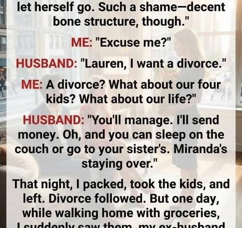 He said it while standing beside his mistress, who looked me up and down and smirked, commenting on how I’d “let myself go.” Four kids. Years of sacrifice. And just like that, our life was dismissed.