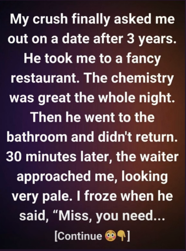 After three years of quiet hope and stolen glances, my crush finally asked me out. He chose a gorgeous restaurant—soft lighting, crystal glasses, the kind of place that makes a moment feel important. Conversation flowed easily, laughter came naturally, and I kept thinking, Maybe this is finally our moment.
