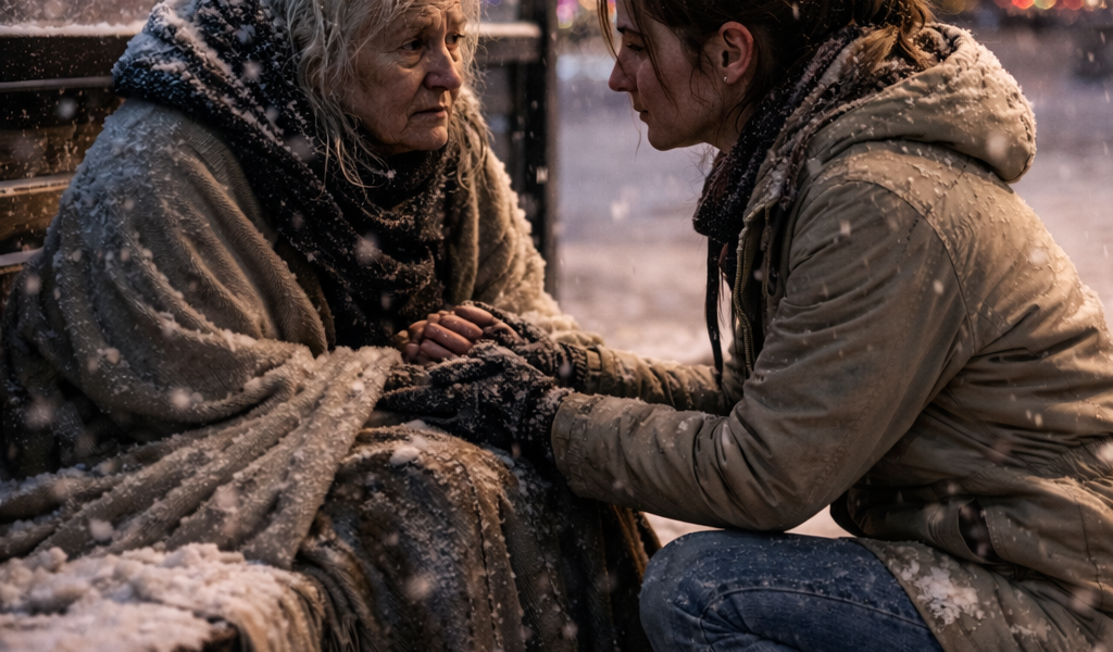 There was an elderly woman slumped against a bus stop bench, swathed in blankets that were scarcely better than tissue paper. Snow blanketed her hair and shoulders. Her hands shook uncontrollably as she attempted to gather them for warmth.