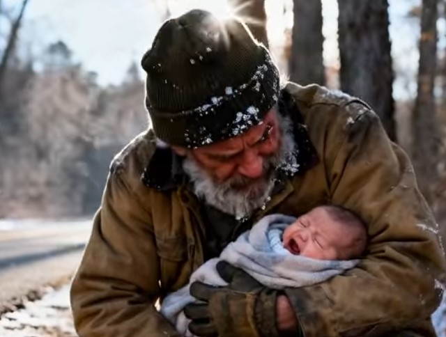 On a bitter-cold November morning, I drove slow along the gravel fire road, scanning the treeline like I’d done for forty years. Then a soft, rhythmic cry tore through the silence—not a deer, not a man. I jumped into the ditch, shoved aside the briars… and froze: an infant carrier, hidden like trash. “Oh God… who leaves a baby here?!” I wrapped the blanket tighter and whispered, “Easy. I’ve got you. You’re safe now.” And in that instant, I knew I wasn’t hunting today—I was fighting for a life… and the truth behind that cry was only beginning.