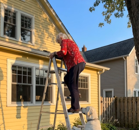 ladder was already leaning against the trunk, and I didn’t want to postpone the task any longer. I had barely climbed a few steps when I felt a sudden tug at my pants. Startled, I turned around and saw my dog trying desperately to climb the ladder behind me. His paws slipped on the metal rungs, his nails scraped loudly, and his eyes—wide, focused, almost pleading—never left mine. I tried to laugh it off, telling him to get down and stop fooling around, but he only became more persistent. His teeth gripped my pant leg again, pulling so sharply that I nearly lost my balance.