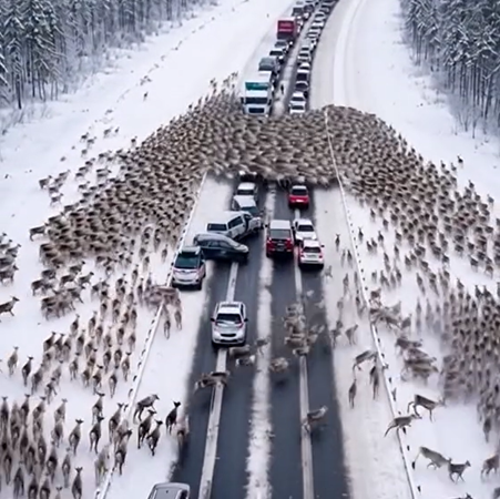 - Drivers Face Surprise as Massive Herd of Deer Halts Traffic on Christmas