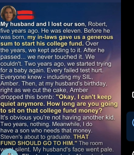 Everything changed one evening at a family birthday dinner meant to be celebratory. Laughter filled the table—until my sister-in-law, with casual curiosity, asked why we hadn’t used or closed the education fund. She suggested maybe it should be reassigned within the family, since “it wasn’t doing anything.” The room fell silent. Her comment wasn’t malicious—it was simply unaware of the quiet gravity surrounding that account. Yet in her question, an unspoken pain resurfaced: the contrast between those who move on and those who carry love in quieter, eternal ways.