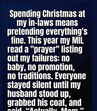 Every holiday visit to my in-laws came with an unspoken rule: smile, stay pleasant, and don’t disrupt the peace. Christmas was the hardest, wrapped in expectations I never quite met. That year, the living room glowed with lights and polite laughter, but tension lingered beneath the surface.