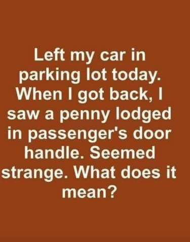 You walk back to your car and notice something strange—a penny wedged tightly into the passenger-side door handle. It looks harmless, maybe a prank. But it could be a warning sign of a theft attempt.