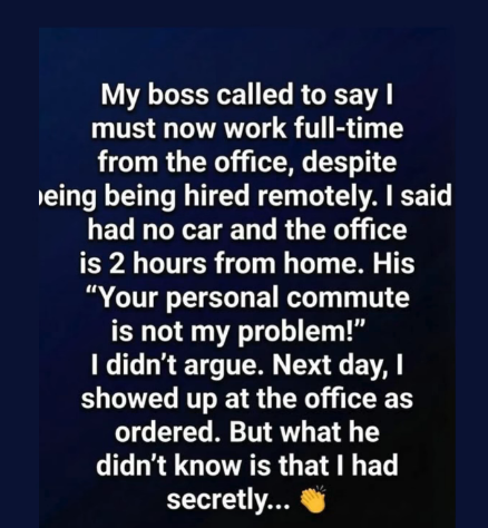 When my boss called that afternoon, I expected a routine update. Instead, he said, far too casually, “We’re ending remote work. Starting Monday, you’re expected in the office full-time.”