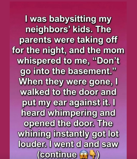 The first thing that stayed with me wasn’t the warning, but how she said it. As the parents hurried out, the mother leaned close and whispered, “Don’t go into the basement,” then smiled like it was just a quirky rule. I nodded, waved them off, and tried not to overthink it.