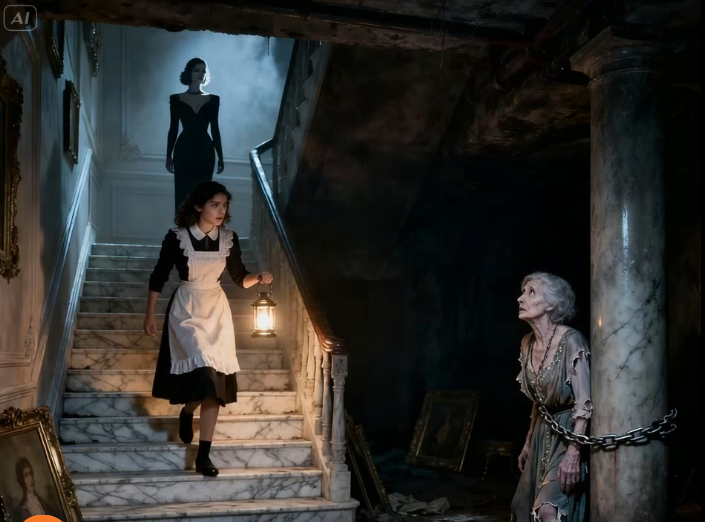 Clara Jiménez thought the Del Monte mansion was just another rich household—cold, strict, full of secrets she wasn’t meant to see. But the night she heard a faint cry rising from beneath the marble floors, everything changed. Forbidden to approach the basement, she felt her heart pound as she followed the trembling voice into the dark. What she found chained in the shadows wasn’t a thief… or a stranger. It was the billionaire’s own mother—locked away by his elegant, cruel wife. And Clara had just uncovered a secret powerful enough to destroy the entire family.