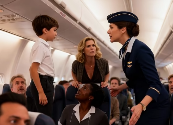 A little boy kept teasing and kicking the seat of a Black girl on the plane, but when the flight attendant stepped in to stop him, his mother snapped, “He’s just a child — she’s the real problem!” What the airline did next made both the mother and her son instantly regret their behavior.