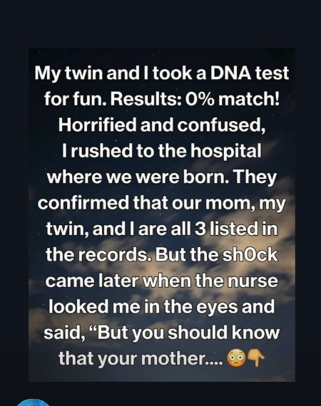 The staff reviewed the old records and confirmed that our mother, my twin, and I were all correctly listed at birth. Still shaken, we waited for an explanation. Then a nurse gently pulled me aside and explained that unusual birth circumstances or outdated testing methods can sometimes cause confusing results in modern DNA reports.