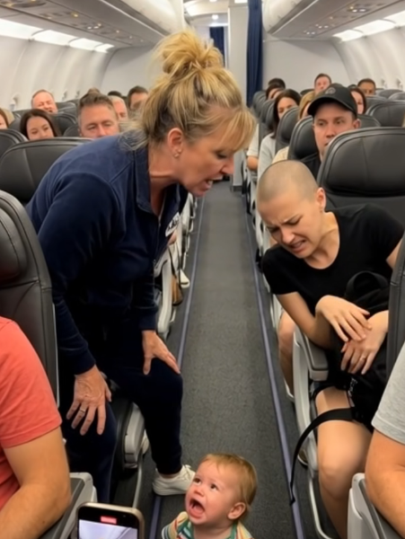 Sarah, the flight attendant, stiffened. Her professional mask slipped, revealing a flash of steel beneath. “Ma’am, sit down. Now. You are interfering with flight crew duties.”