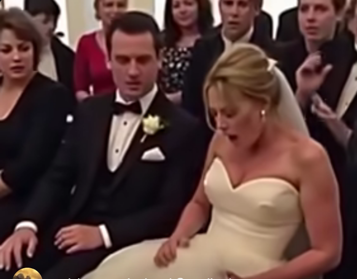 In that moment, the cathedral was suspended in a delicate balance of suspense and anticipation, all centered around the bride and the mysterious movement beneath her dress.