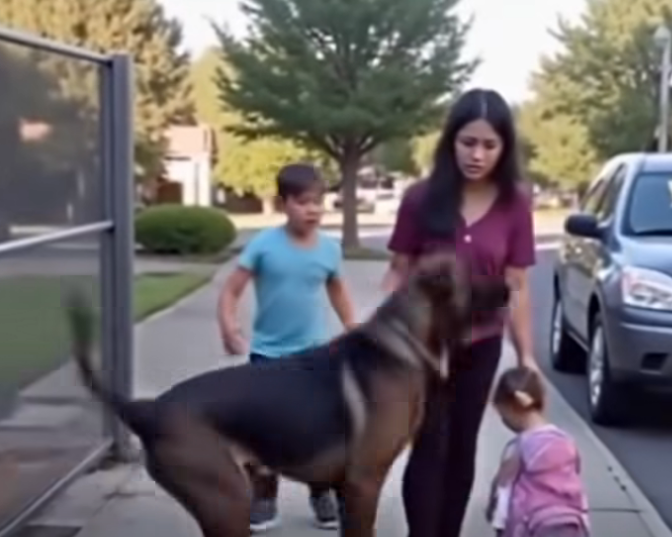 The dog placed his front paws gently—but firmly—on the little girl’s shoulders. He lowered his head to sniff the pink backpack. His tail didn’t wag. His posture wasn’t playful. He was alerting.