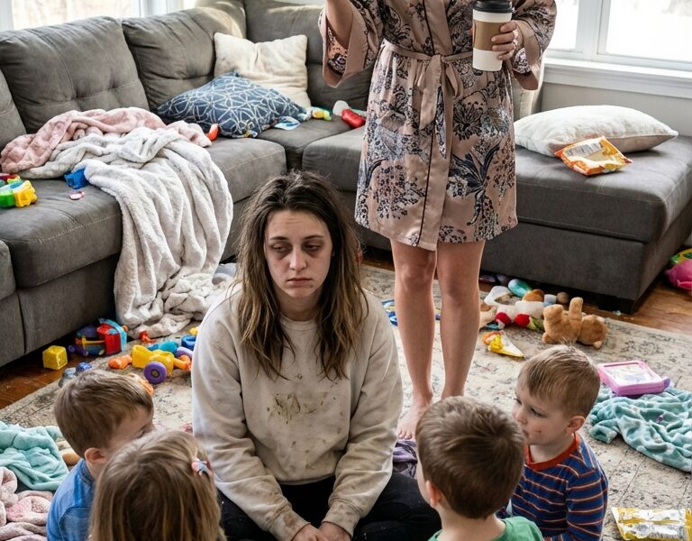 Grandma Lorraine stood on the porch. She clutched her purse tightly against her chest, a look of severe disapproval painted on her face. She hadn’t come to scrub the filthy floors. She hadn’t come to cook for her great-grandchildren. She had come to hold court.