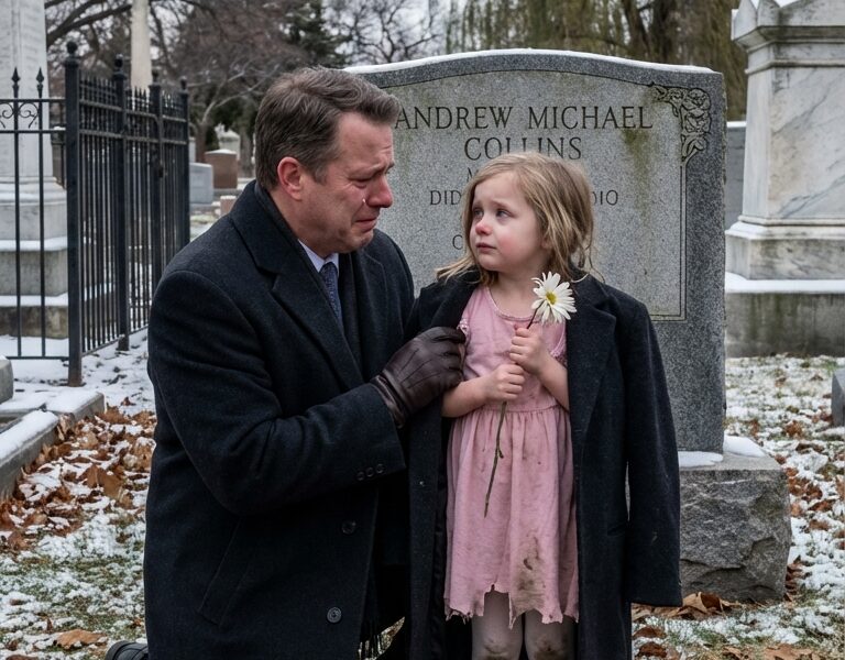 She didn’t notice me at first, and the sound she made wasn’t dramatic or loud, it was the kind of restrained crying that comes from someone who has learned early that tears don’t guarantee help, just quiet hiccupped breaths escaping between clenched teeth, and it struck me then how profoundly wrong it was for a child to be alone in a cemetery on a weekday afternoon.