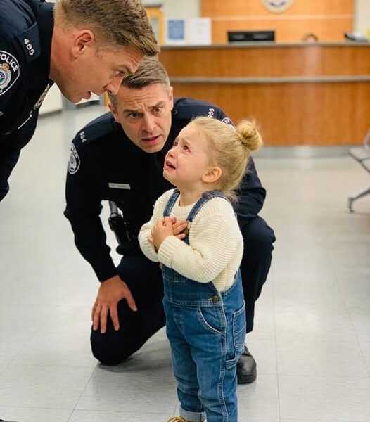 The officer was bewildered at first, but then he couldn’t help but smile. He gently hugged the crying child and whispered to her: