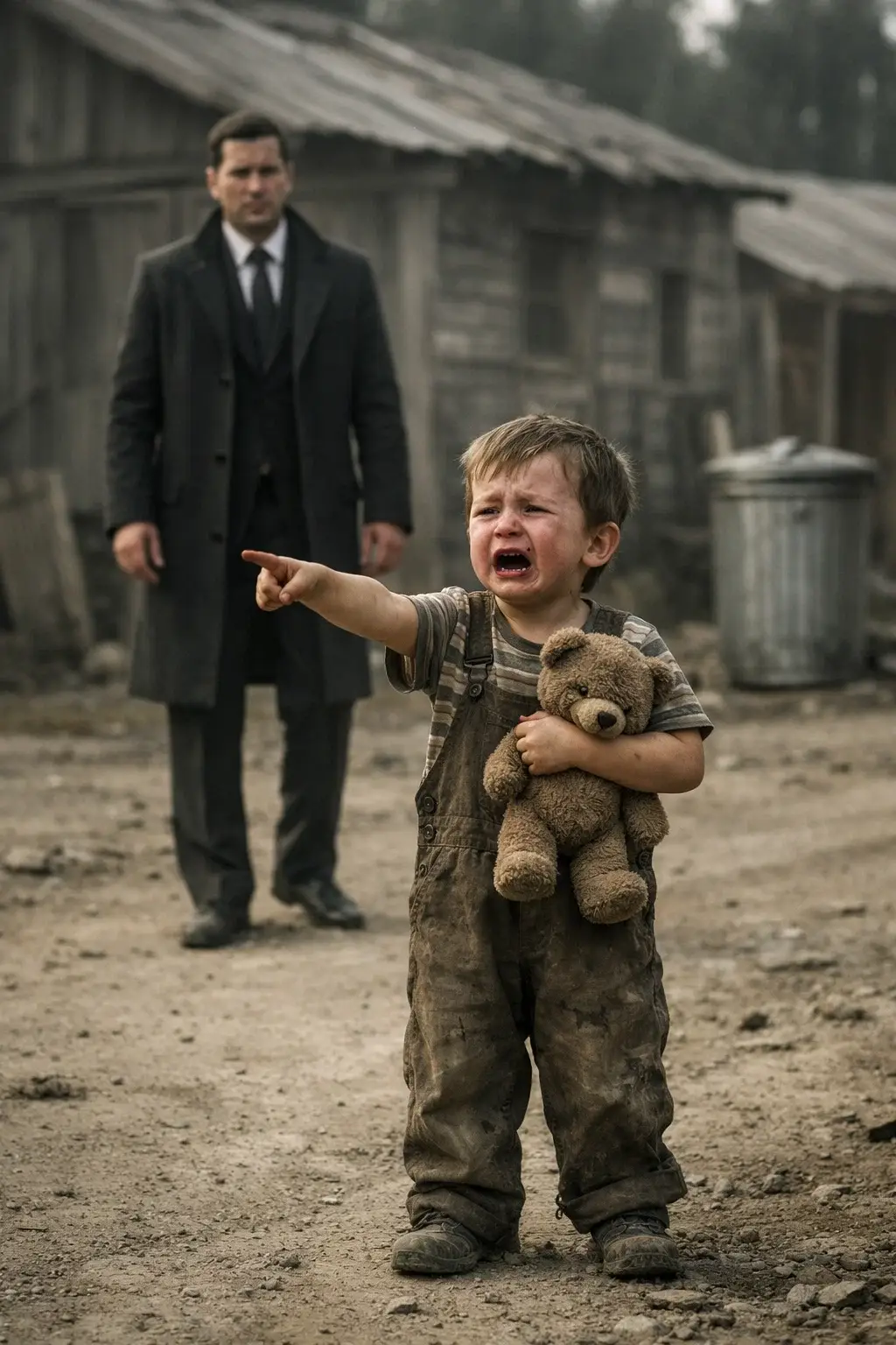 Near a dented green dumpster at the edge of the square stood a trembling boy. He couldn’t have been older than six. His jacket was too thin, his sneakers split at the toes, and clutched in his arms was a stuffed bear so worn its face had almost disappeared. He cried the kind of cry that doesn’t seek attention. It seeks survival.