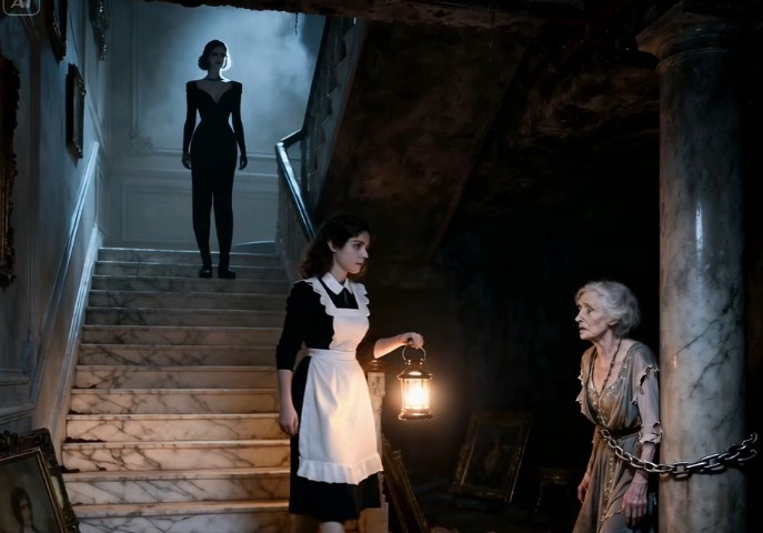 Clara Jiménez thought the Del Monte mansion was just another rich household—cold, strict, full of secrets she wasn’t meant to see. But the night she heard a faint cry rising from beneath the marble floors, everything changed. Forbidden to approach the basement, she felt her heart pound as she followed the trembling voice into the dark. What she found chained in the shadows wasn’t a thief… or a stranger. It was the billionaire’s own mother—locked away by his elegant, cruel wife. And Clara had just uncovered a secret powerful enough to destroy the entire family.